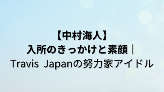 【中村海人】入所のきっかけと素顔|Travis Japanの努力家アイドル