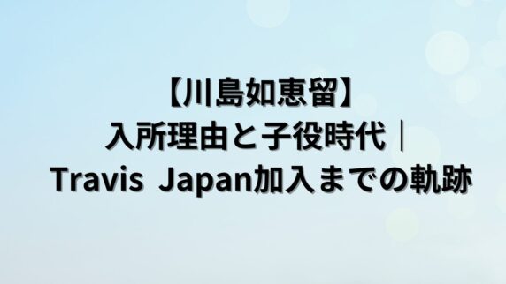 【川島如恵留】入所理由と子役時代|Travis Japan加入までの軌跡